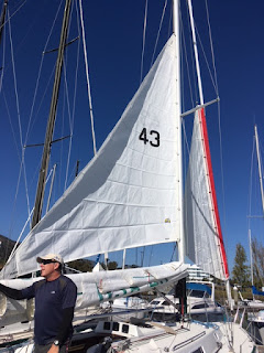 Of course, once you've made that decision the hard part is deciding where to put the solar panel(s) and how to mount them. You want to avoid shading on the panel and it needs to be out of the way, further limiting your choices. We've decided to put the panel on the stern pulpit, but it needed to be able to be moved out of the way should we need to access the emergency rudder system. Using rail mounts on a stainless steel tube across the stern pulpit seemed the way to go. We first tried this using hose clamps to mount the tube, but that didn't prevent the tube from rotating due to the weight of the solar panel. So we opted for jaw clamps commonly used for dodger frames: